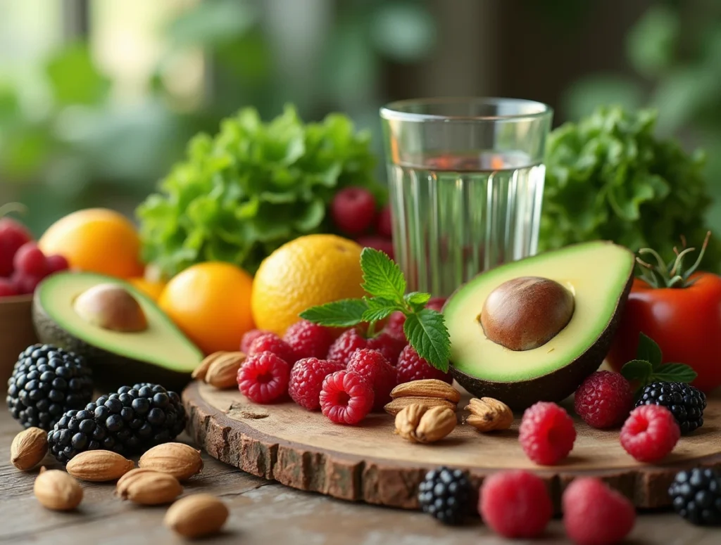 Water-rich foods like watermelon, cucumbers, and lettuce help with daily hydration. These foods support skin health and help keep our skin clear.