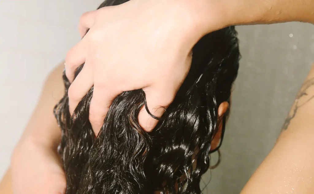- Begin with proper cleansing: Use a gentle, sulfate-free shampoo that won’t strip your hair’s natural oils. Focus the shampoo on your scalp rather than the length of your hair to preserve moisture.