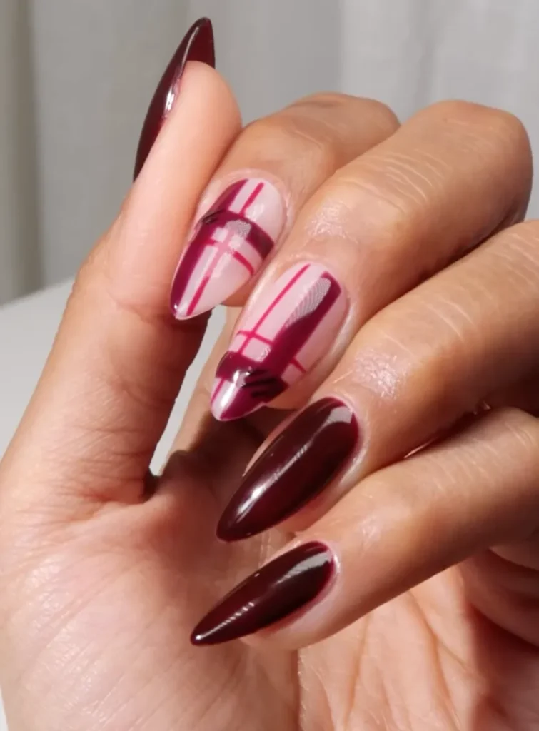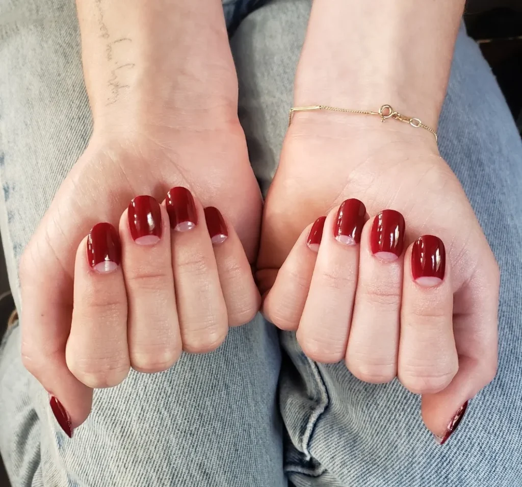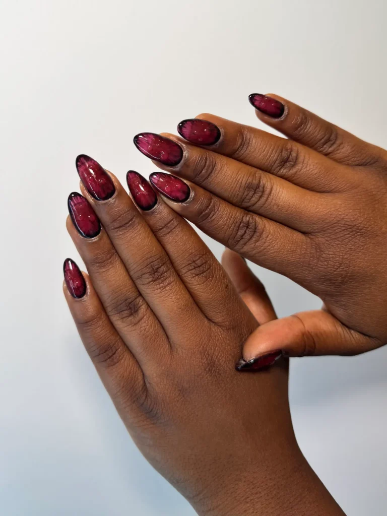 “The beauty of dark cherry nails is their chameleon-like ability to shift perception,” explains celebrity manicurist Gerstein. “On short, natural nails with a high-gloss finish, dark cherry nails exude professional elegance. On long, almond-shaped nails with matte texture, they transform into something dramatically fashion-forward.”
