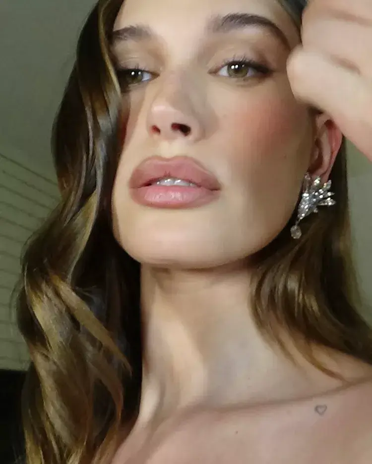 For a touch of definition, Bieber applies a small amount of bronzer just under her cheekbones and around the perimeter of her face. “I’m not contouring heavily for everyday—just adding a touch of warmth where the sun would naturally hit.”