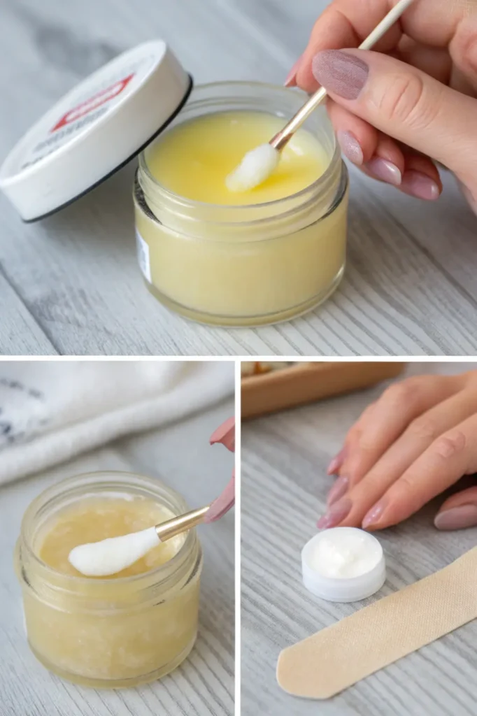 Allow the petroleum jelly to sit undisturbed for 20-30 minutes as it penetrates the glue. Using a cotton swab, massage the area gently in circular motions—you’ll notice the glue beginning to soften and separate from your skin.