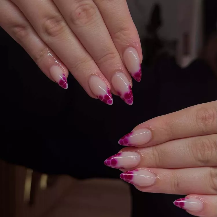 This technique-focused May nail idea takes the traditional French manicure into new territory with a “blooming” effect. The vibrant fuchsia tips appear to bleed slightly into the natural base, creating a watercolor-like diffusion rather than a sharp line. The effect mimics how colors bleed together in actual flowers, making it one of the most naturally inspired May nail ideas. While the technique looks complicated, it’s surprisingly achievable even for at-home manicurists, requiring just a small brush to drag the color inward from the tip. The result is both elegant and organic—a perfect representation of May’s natural beauty.