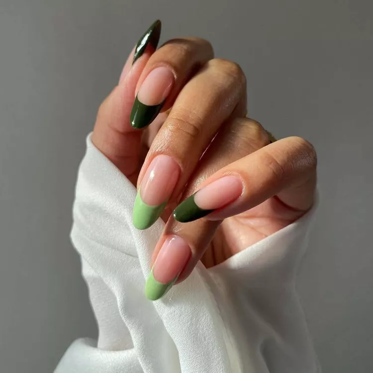 This sophisticated May nail idea celebrates the month’s emerald birthstone through a gradient of green shades applied as French tips. The colors range from pale sage to deep forest, creating a dimensional effect that feels organic and natural. What sets this apart from other green May nail ideas is the technique—each shade blends slightly into the next, avoiding harsh lines between colors. The result is reminiscent of looking through layers of spring foliage with light filtering through. This design offers a subtle way to incorporate May’s signature emerald while maintaining an elegant, wearable appearance.