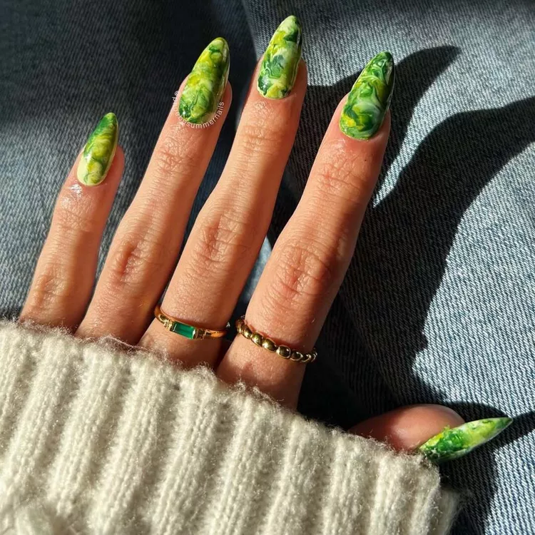 May’s birthstone—the emerald—provides the inspiration for this luxurious marbled nail design. Various shades of green swirl together to create a natural stone effect, reminiscent of both precious gems and the fresh new foliage of May. What makes this one of the most striking May nail ideas is the technique: the watercolor-like application creates depth and dimension that catches light beautifully. For those celebrating May birthdays, this manicure offers a sophisticated nod to the month’s birthstone without being overly literal, making it a refined choice for birthday celebrations or any spring occasion.