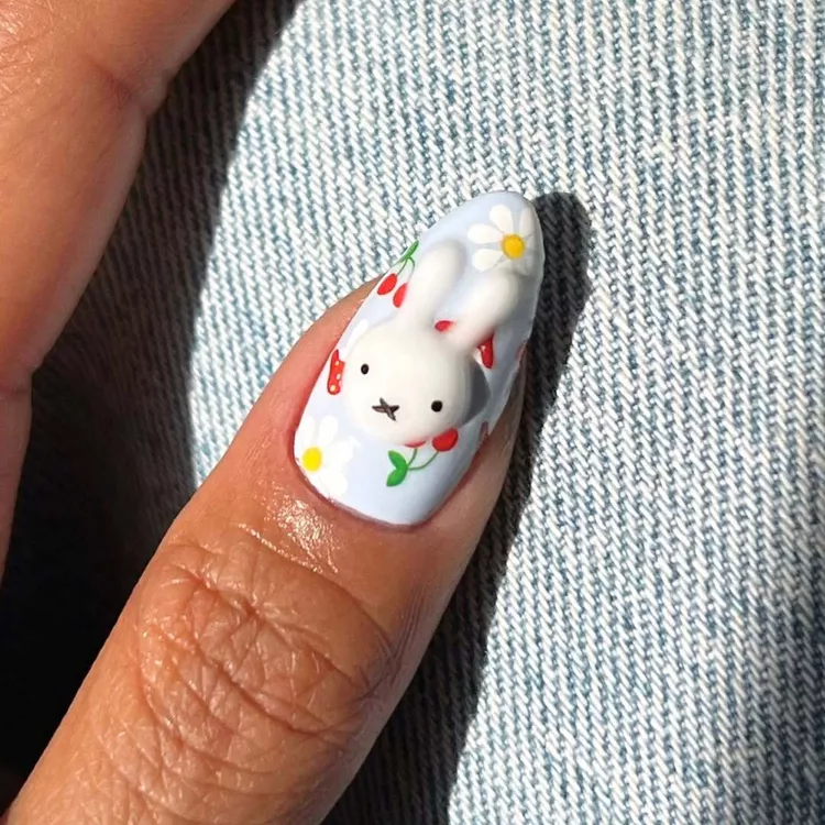 This maximalist May nail idea embraces the month’s abundant flora and fauna with a riot of springtime motifs. Each nail tells a different story—from hand-painted flowers and butterflies to three-dimensional bunny sculptures—creating a playful garden on your fingertips. The cohesion comes from a complementary color palette of pastels with strategic pops of brighter hues. While more elaborate than most May nail ideas, this design captures the essence of the season’s exuberance. For those who view their nails as a canvas for artistic expression, this design offers endless opportunities for personalization while maintaining the spring theme.