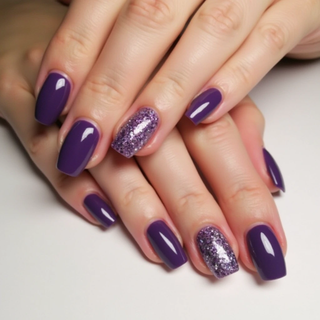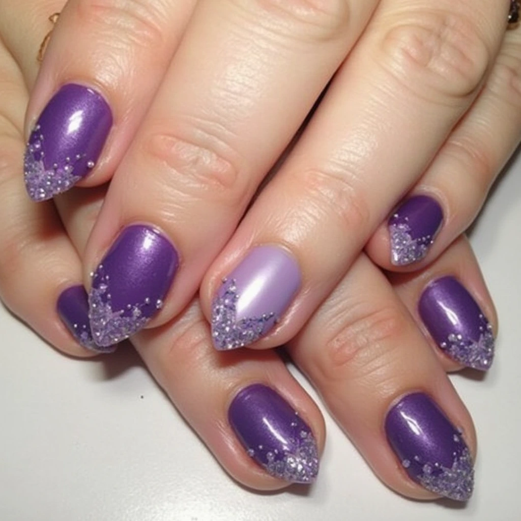 Add glamour to your purple nails with glitter and metallic finishes. Choose from delicate glitter to bold metallic designs. Play with different patterns to find your favorite purple look.
