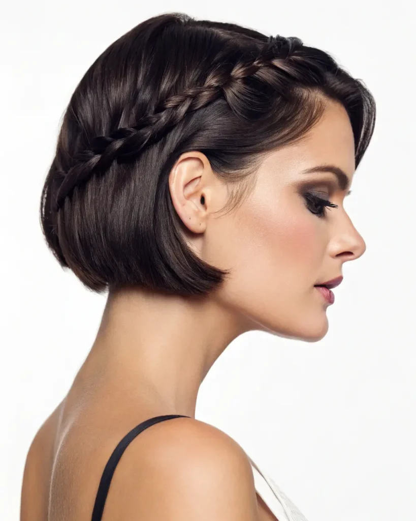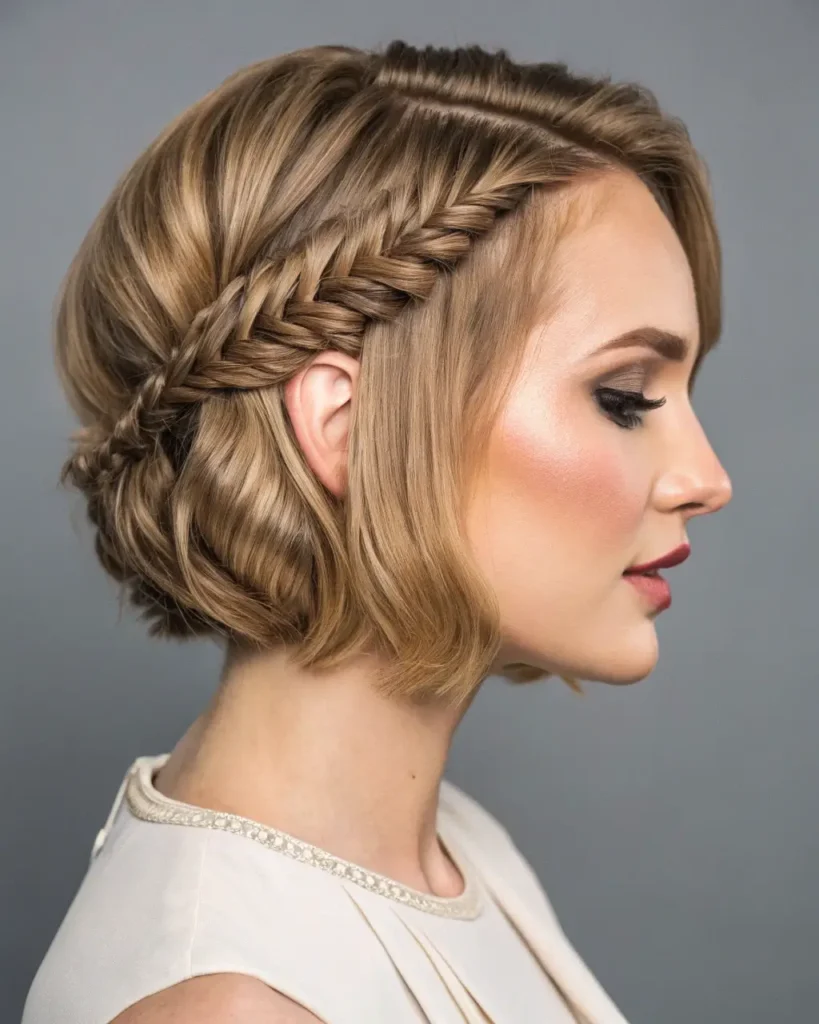 The French braid bob combines the elegance of traditional braiding with modern short hair trends. This short braid style works exceptionally well on bob-length hair, creating a sophisticated look that’s perfect for professional settings.