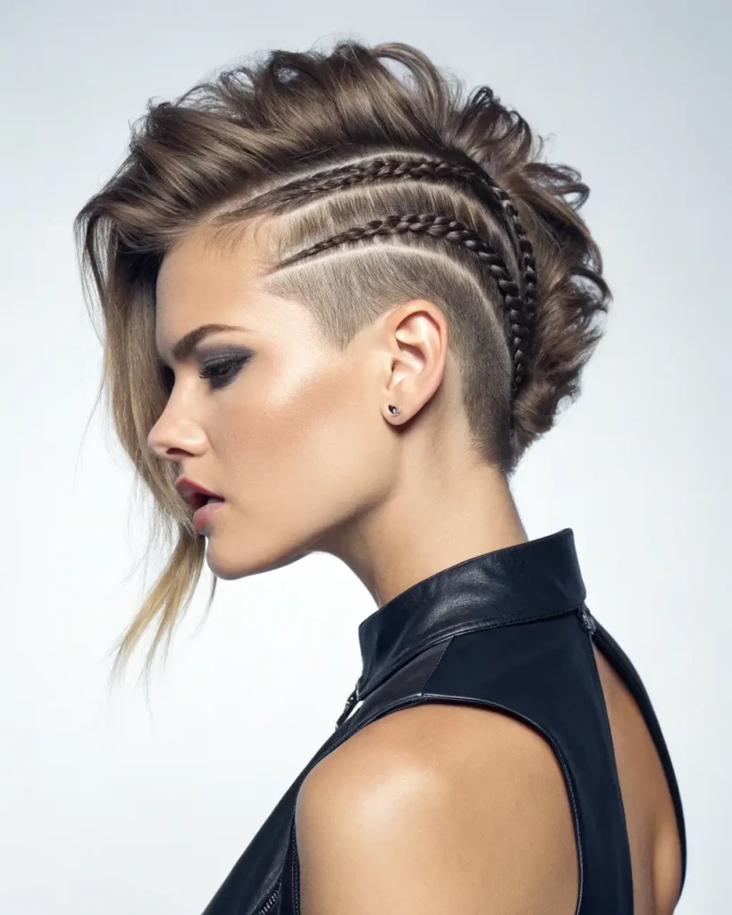 - Combination of braids and shaved designs