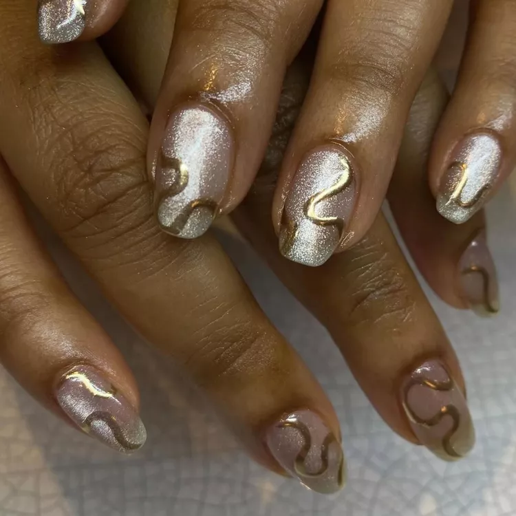 The ornate metalwork found throughout Western fashion—from conchos to spurs—provides inspiration for this luxurious western nail idea featuring 3D chrome polish in varying metallic finishes. Among the more glamorous western nail ideas, the combination of bronze, gold, and silver creates dimension and interest while paying homage to traditional craftsmanship. Rather than appearing costumey, this western nail design feels genuinely elevated, demonstrating how western nail ideas can translate into high-fashion contexts. The textural quality of the raised metallic swirls adds tactile interest that makes this western nail idea truly distinctive for those seeking sophisticated country-inspired manicures.western nail ideas.
