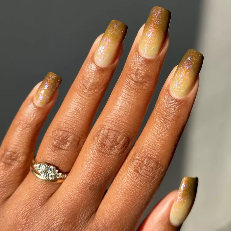 Few natural phenomena capture the magic of Western landscapes quite like the dramatic sunsets that paint skies in breathtaking color combinations. This gradient manicure transitions from golden honey to burnt umber, mimicking the progression of evening light across vast horizons. The addition of iridescent glitter creates dimension that shifts with movement, just as real sunsets change with every passing moment. This design works particularly well in transitional seasons when its warm color palette complements both summer and fall wardrobes.
