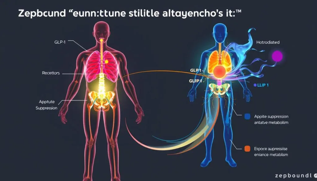 Zepbound’s tirzepatide mechanism mimics GLP-1 and GIP hormones. These hormones control hunger, metabolism, and blood sugar. By acting on both, Zepbound reduces hunger, slows digestion, and boosts metabolism. This leads to lasting weight loss.